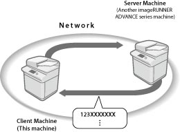 The machine can access a server machine on the network as a client machine to search for/specify destinations from the Address Book of the server machine.