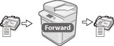 You can set the machine to automatically forward received fax documents that match the specified forwarding conditions to any destination using the desired send settings. You can also forward received fax documents to other machines (relay function) or automatically store received documents that are confidential in the Confidential Fax Inbox. In addition, you can set automatic forwarding to activate at a specified time. Since received documents that do not match the forwarding conditions can also be forwarded to a desired destination, you can use this function to sort and deliver received fax documents to the appropriate destinations.