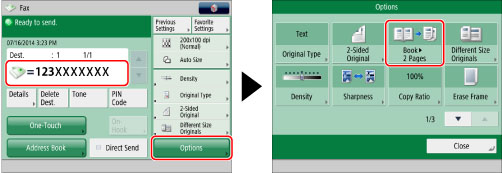 This mode enables you to scan facing pages in a book or bound original and record them onto separate pages.
