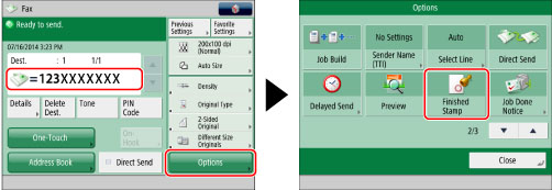 Place your originals in the feeder. The finished stamp is applied to the originals that are scanned from the feeder.