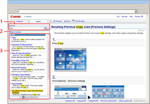 Example: Toner Message (if you want to display pages which include words, "Toner" and "Message") You can enclose a phrase in double quotation marks (") to search for that phrase.