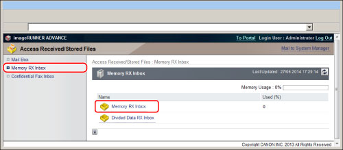 Click [Access Received/Stored Files] → [Memory RX Inbox] → [Memory RX Inbox].