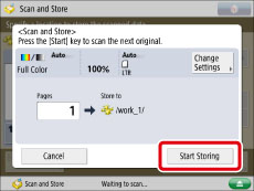 You can scan and store up to 999 pages at one time. If two-sided originals are scanned using the feeder, you can store up to 1,000 pages. Once the maximum number of originals you can scan is reached, a message asking whether to store appears.