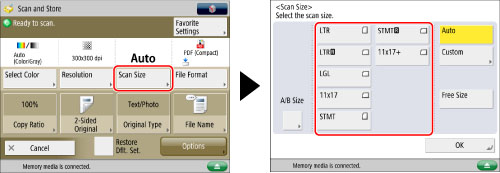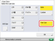 You can manually specify a scan size when scanning originals that cannot be detected using [Auto]. You can also register the specified scan size.