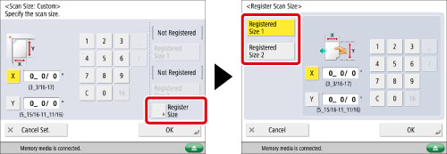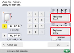 Press [Register Size] → [Registered Size 1] or [Registered Size 2].