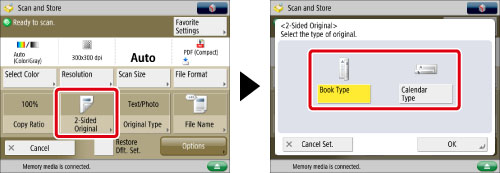 If you want to scan each side of the 2-sided originals placed on the platen glass, specify [Job Build] settings. (See "Job Build.")