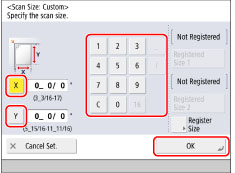 You can manually specify a scan size when scanning originals that cannot be detected using [Auto Size]. You can also store the specified scan size.