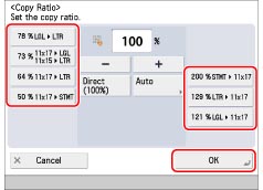 You can use preset copy (zoom) ratios to enlarge or reduce standard size originals to other standard sizes.