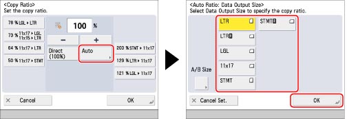 You can automatically enlarge or reduce an original to a specified paper size. The same zoom ratio is used for the horizontal and vertical axes.
