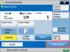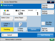 Press [Access Stored Files] → [Memory Media].