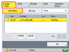 Press [Copy/Print] → [Job Status].