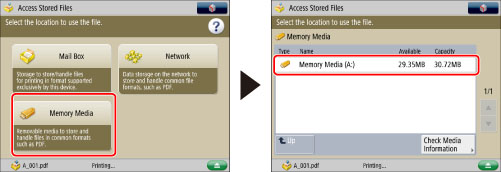 As an example, the procedure for printing JPEG and TIFF files that are stored in memory media is explained in this section.