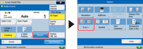 This mode is only available for printing files stored in the Advanced Space of another imageRUNNER ADVANCE machine on the network or memory media.
