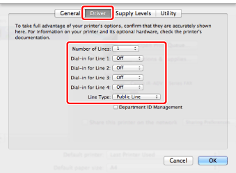 If you are using Mac OS X 10.7 or earlier, check that the driver corresponding to the fax you are using is selected for [Print Using]. For the driver name corresponding to your fax, refer to the Readme file.