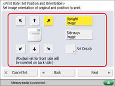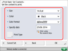 You can also adjust the position of the date. (See "Registering/Editing/Deleting User-Defined Text for Page Numbers and Watermarks.")