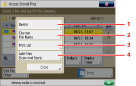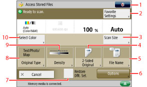 For the procedure regarding [Add Files (Scan and Store)] and instructions on operating the Scan screen, see "Adding a File (Scan and Store)" and "Flow of Scan and Store Operations."