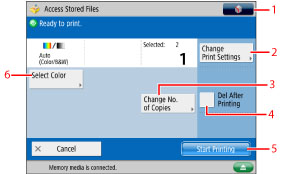 Press to set the number of prints when multiple files are selected. This key is displayed only when multiple files are selected. |