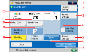 Press to cancel all settings. (The machine restores the default settings for Access Stored Files.) |