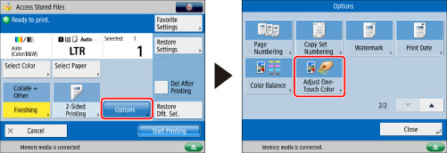 Press [Options] → [Adjust One-Touch Color].