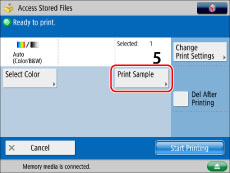 [Print Sample] appears only if you set to make multiple prints of your original with [Collate (Page Order)], [Offset], [Rotate 90 Degrees], [Staple], or [Booklet].