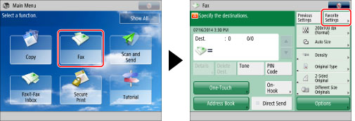 Press [Fax] → [Favorite Settings].