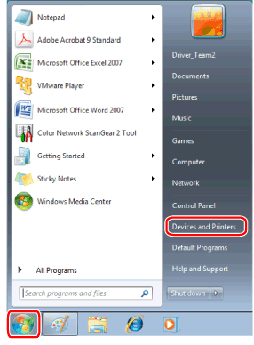 Settings] → [Control Panel] → [Devices and printers].For Windows 7/Server 2008 R2, click [