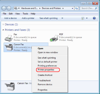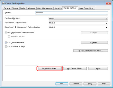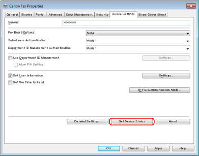 If you are using a shared printer, you need to install Canon Driver Information Assist Service in the print server computer in order to use the [Get Device Status] function. For details about how to install the Canon Driver Information Assist Service, see the "Fax Driver Installation Guide" (see "Installation").