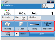 You can register modes in the shortcut keys displayed on the Copy screen. You can register up to five desired buttons from [Options] and [Favorite Settings].