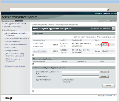 Changes to the login service settings are enabled after the machine is restarted. For instructions on turning On/Off the machine, see "Main Power and Energy Saver Key."