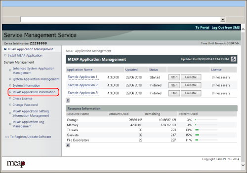 Click [MEAP Application Information].