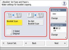 If you do not use the Booklet Scan mode, you cannot select the layout of two-sided originals.