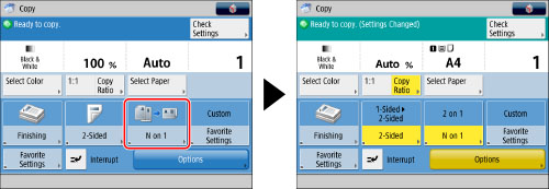 If you register [2-Sided] + [2 on 1] in Favorite Settings, the screen is displayed as shown below.