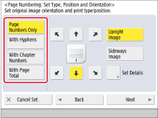 If you use [Page Numbering] with [Add Cover] or [Insert Sheets], numbers will not be printed on the inserted pages.
