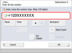 You can specify a fax number using - (numeric keys), , and . You can also specify several numbers in succession, and send the original to several destinations in a single operation (Sequential Broadcast).