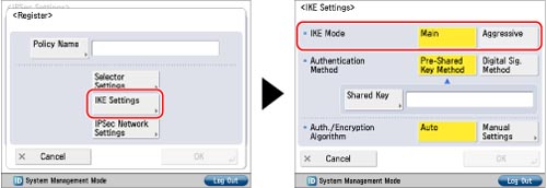 Press [IKE Settings] → select the mode to use for IKE phase 1.