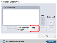 If any of the following is true for the destination machine, the message <Could not retrieve device information details. Do you want to register it as a destination?> is displayed. If you press [Yes], <Distributable Settings> on the Details screen will be blank.