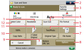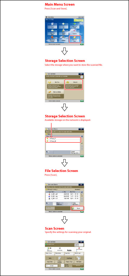 Display this screen when you want to scan an original and store it as a file in the selected folder.