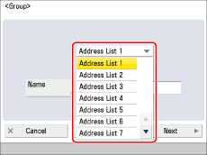 If you want to store a group address, you can only select destinations registered in the same Address List.