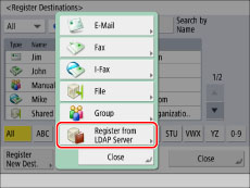 You can store an e-mail address obtained by searching the directory listings on the network using LDAP (Lightweight Directory Access Protocol) servers.