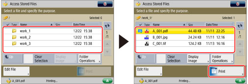Select the location where the file you want to print is stored → select the desired file → press [Print].