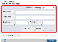 The procedure below describes how to register the folder path for the personal folder and authentication information for each user.
