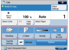 You can register modes in the shortcut keys displayed on the Copy screen. You can register up to five desired buttons from [Options] and [Favorite Settings].