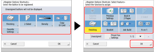 Press [Function Settings] → [Copy] → [Register Options Shortcuts].