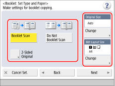 If you do not use the Booklet Scan mode, you cannot select the layout of two-sided originals.