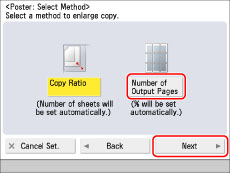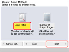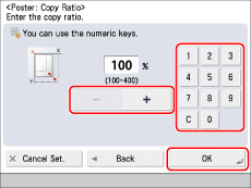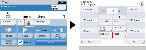 To cancel this setting, press [Copy Ratio] → [Poster] → [Cancel].
