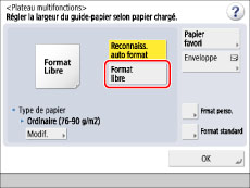 Si [Format libre] est sélectionné, il est possible d'utiliser moins de fonctions que lors de la définition d'un format de papier avec [Format perso.].
