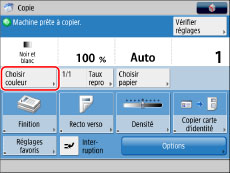 Si [Utiliser Auto (Couleur/Noir et blanc)] sous [Choisir réglages couleur copie] est défini sur "Non", [Auto (Coul./N&B)] ne s'affiche pas. (Voir "Limitation de l'utilisation de Choix auto. des couleurs".)