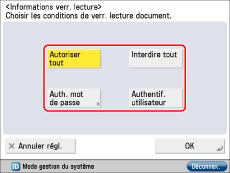 (Voir "Spécification des réglages opérationnels de verrouillage de lecture de document".)