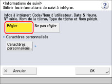Grâce à ce réglage, il est possible de limiter la copie/impression non autorisée, et aussi d'analyser les informations intégrées sur la sortie afin de savoir l'auteur, la date, et la machine à l'origine de la copie ou impression.