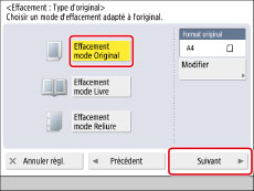 Appuyer sur [Effacement mode Original] → appuyer sur [Suivant].